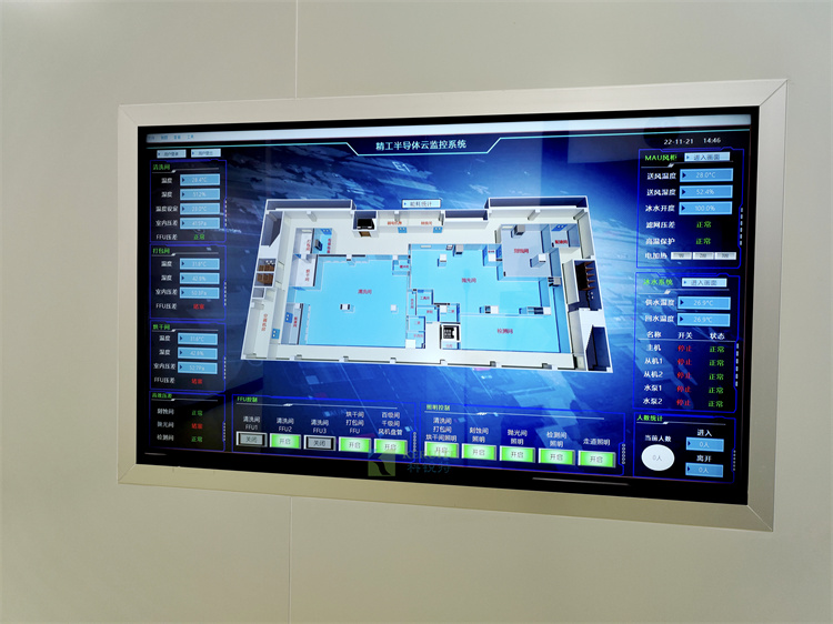 工程內(nèi)容:設(shè)計采用了自主研發(fā)的智慧潔凈室維運平臺系統(tǒng)對整個廠房進行智能中控。通過遠程數(shù)據(jù)傳輸功能,在實際運用中將他們進行技術(shù)整合,可以實時監(jiān)控和遠程云控,定時抄錄完整數(shù)據(jù)反饋至主機,最大程度上解決了客戶節(jié)能、便捷、智能的潔凈室一體化管理。在實踐運用中操作簡單,科技性強,已作為當?shù)卣畬ν庹猩掏扑]標桿項目,長期接受各界參觀考評,深受好評。